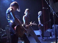 Woo kicked off with tons of energy, deep bass, jangly guitar strumming, and loud vocals. Thump, thump, lalala, riff, riff. More than enough carby live stuff to feed an obviously rock-hungry audience. Glitter shirts, star-studded string instruments, flaming sneakers, tangles, and swings in their hair. And perhaps best of all ? a solid drummer.